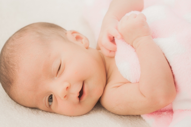 じつはこの頃の笑顔は、弱い生き物である赤ちゃんが、ちゃんとママに可愛がって育てていってもらうための本能の微笑みなのです。生理的微笑や新生児微笑ともいわれます。 この時点では、赤ちゃんは、意識して笑顔を作っているわけではありません。本能の働きで生理的微笑をすることで周りの人が笑顔になり、優しくしてくれる。……そう感じることを体験していく中で、この表情は役に立つらしい、と感じて笑顔を繰り返すようになるのです。