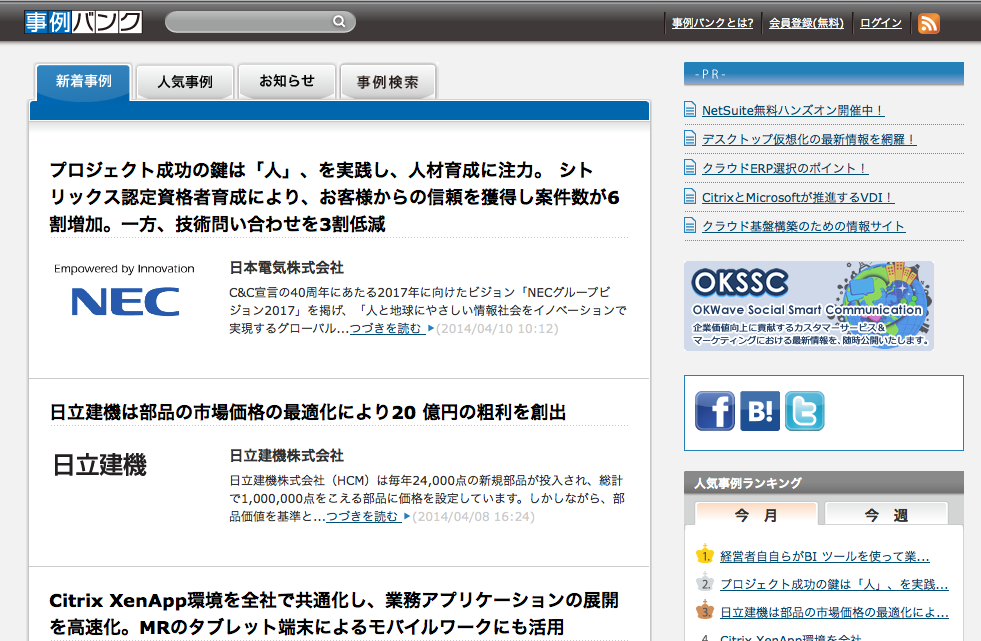 これは結構有名なので誰もが知っている人も多いかもしれません。このサイトその名のとおり事例を集めて公開しているサイトです。そのため実績のある事例がある為のここからどのような事例で他の企業は儲けているかがわかります。