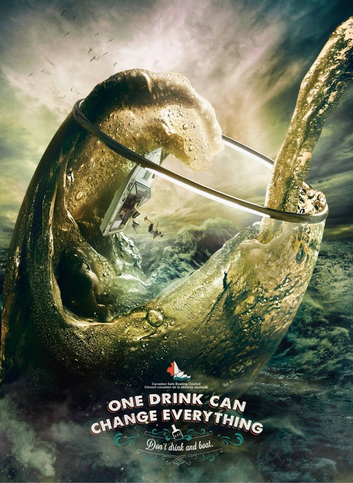 13."One drink can change everything. Don't drink and boat." (一杯のお酒がすべてを変えてしまうかもしれない。飲んだらボートに乗るのは止めましょう。)