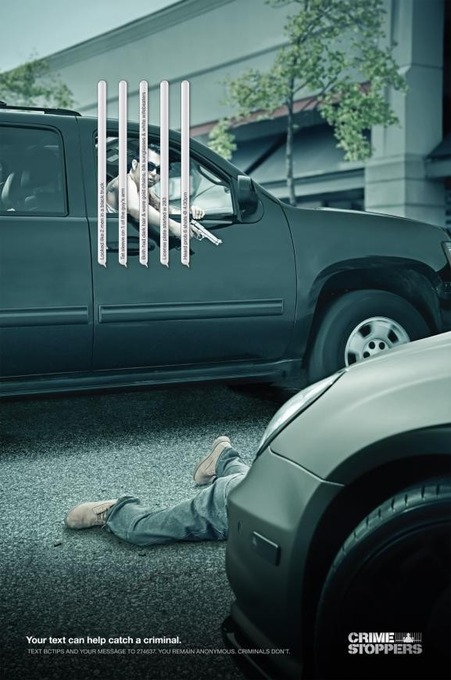 24."Your text can help catch a criminal." (あなたのテキストメッセージが犯人逮捕につながります。)