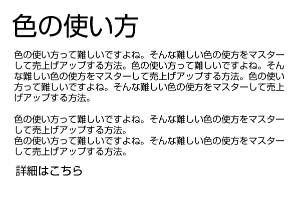 色とレイアウトとは密接な関係にあります。実際レイアウトだけでは訴求するのに非常に弱いのです。つまり色というのは、レイアウトにプラスした訴求のためにあると言っても過言ではないでしょう。